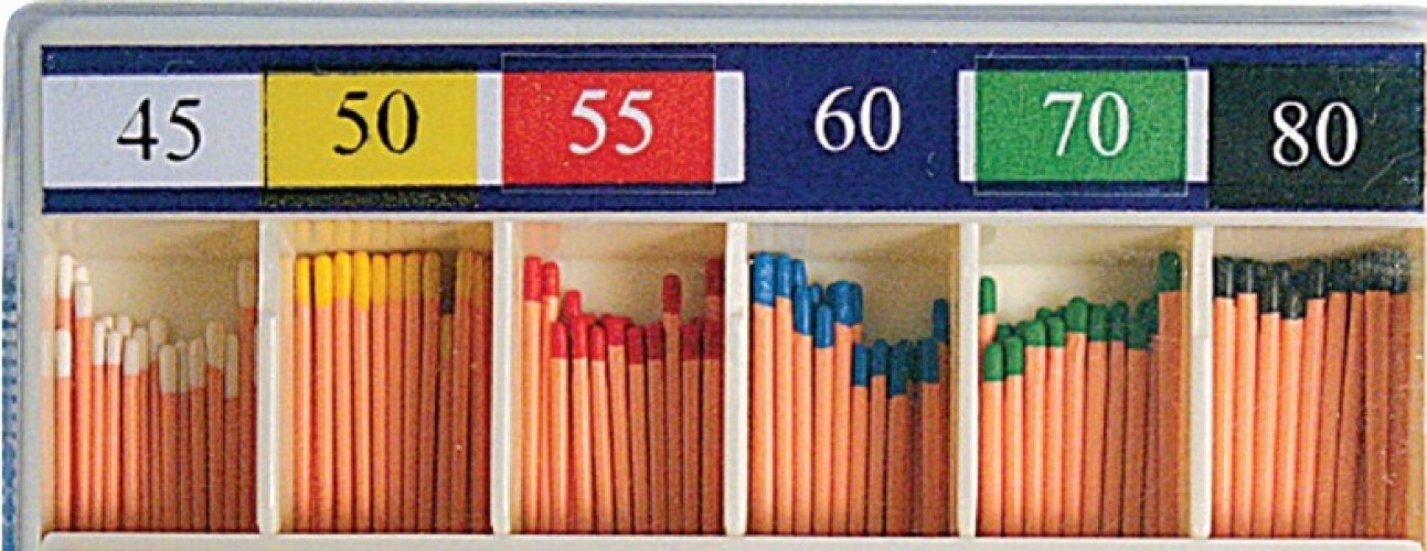 Материал гуттаперчевых штифтов № 45-80 сочетает в себе высокую эластичность и прочность, что облегчает их установку. Конусная форма обеспечивает легкость установки, при этом они надежно прилегают к стенкам, изолируя канал.